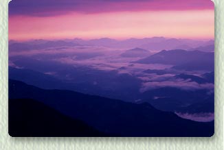 | 大豊インターから車で約55分、標高1400メートル、西に石鎚山系、東に剣山系、そして眼下に吉野川の流れを見る梶ヶ森のロケーションは実に雄大です。静かに昇る日の出の金色の陽光、眼下に広がる雲海の幻想的な風景、漆黒の夜空に降るように輝く星の美しさ・・・朝昼夜それぞれに大自然のドラマが繰り広げられ、まさに別天地。春や夏の草原には可憐な高山植物が咲き、秋には素晴らしい紅葉が山を包み、冬には凍りの花がドラマティックな風景を見せる梶ヶ森は、頂上まで自動車道も整備されており、四季折々にハイカーやキャンパーで賑わいます。 |